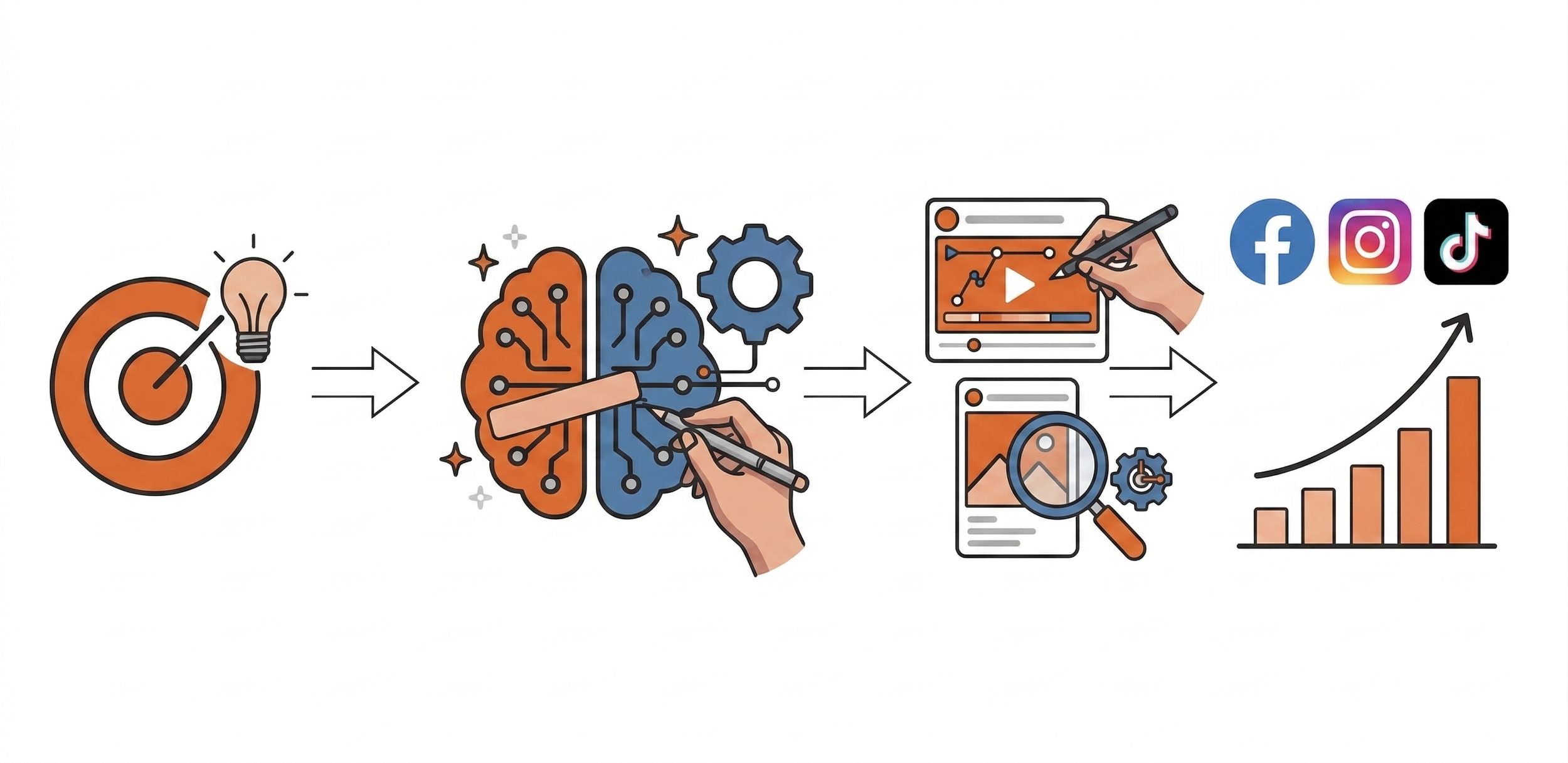 We don't guess. Our systematic framework pairs proven direct-response strategy with AI-assisted creative workflows. This allows us to rapidly ideate, generate variations, and rotate fresh ad assets before fatigue ever hits—scaling your winning hooks faster than traditional teams.